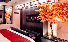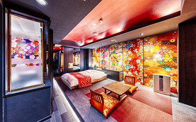 花魁の雰囲気漂うインテリアなど、”癒しのワンシーン”をテーマにしたお部屋をご用意。